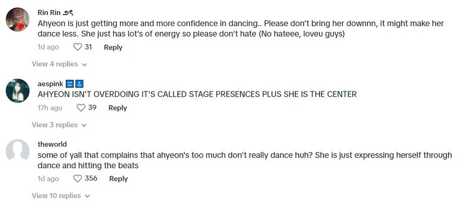 Others defended the idol, saying she just had confidence and energy, showcasing her talent, and that Ahyeon shouldn’t be criticized for her dancing because it shows her “stage presence.”
